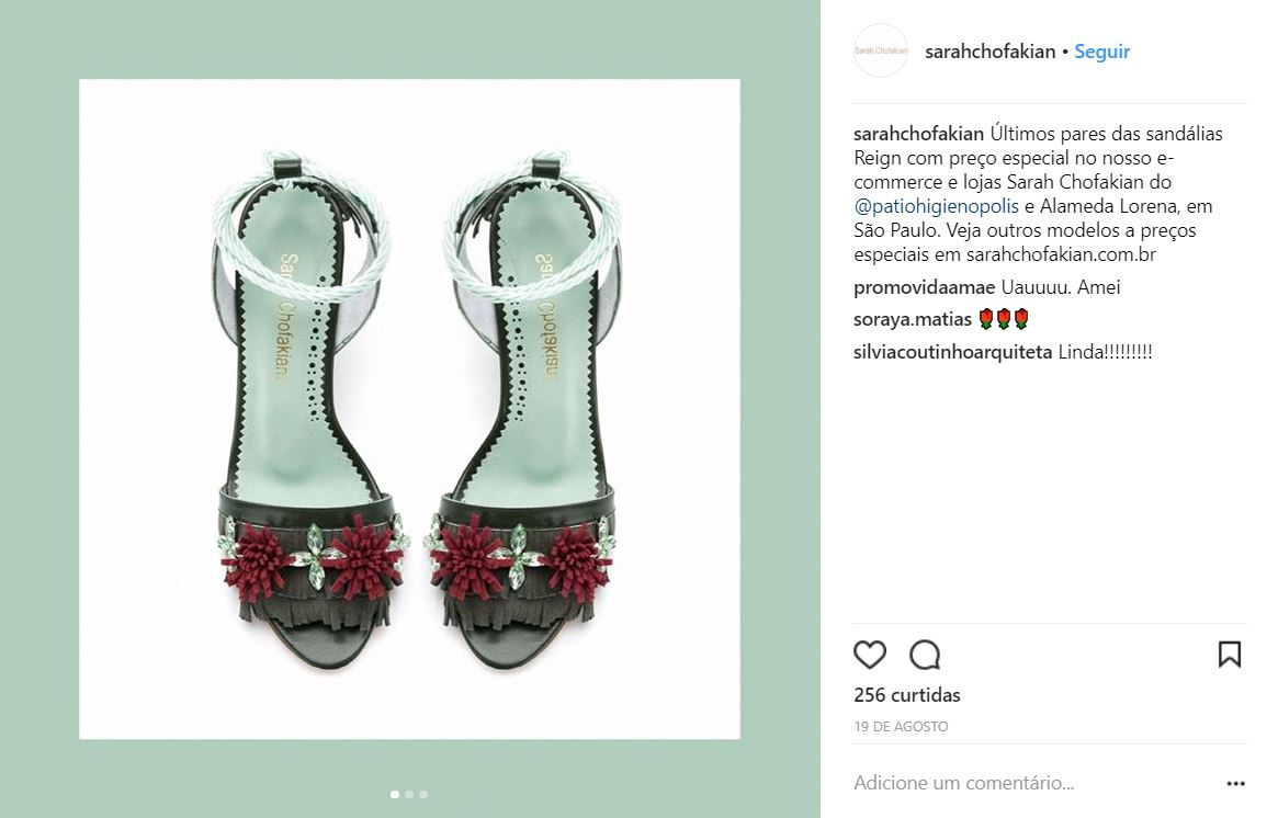 O ar romântico e parisiense é o que você mais encontra nos modelos de sapato da loja. Ah, se você é antenado ao mundo fashion, já ouviu falar da grandiosa Gloria Kalil – jornalista, empresária e consultora de moda brasileira – e não é que essa figura usa Sarah.